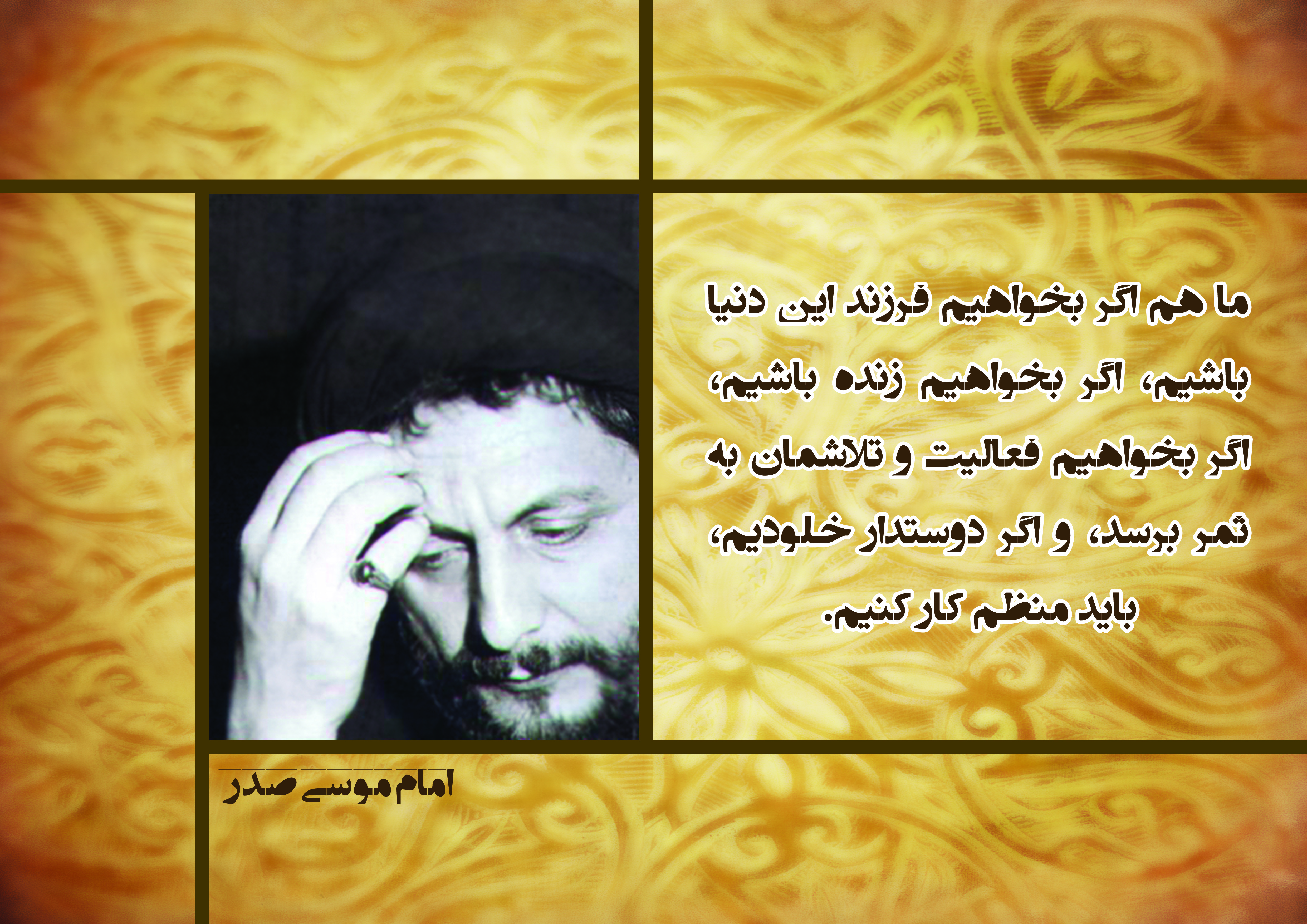 در این دنیاى سازمانى، اگر ما باز بخواهیم تکرَوى کنیم، به نظر من، نهایتِ سادگى است. ما اگر امروز عملِ دسته جمعى نداشته باشیم کلاهمان پسِ معرکه است. که هست! براى اینکه همه چیز منظم و تشکیلاتى و سازمانى است. امام موسی صدر(حفظه الله)